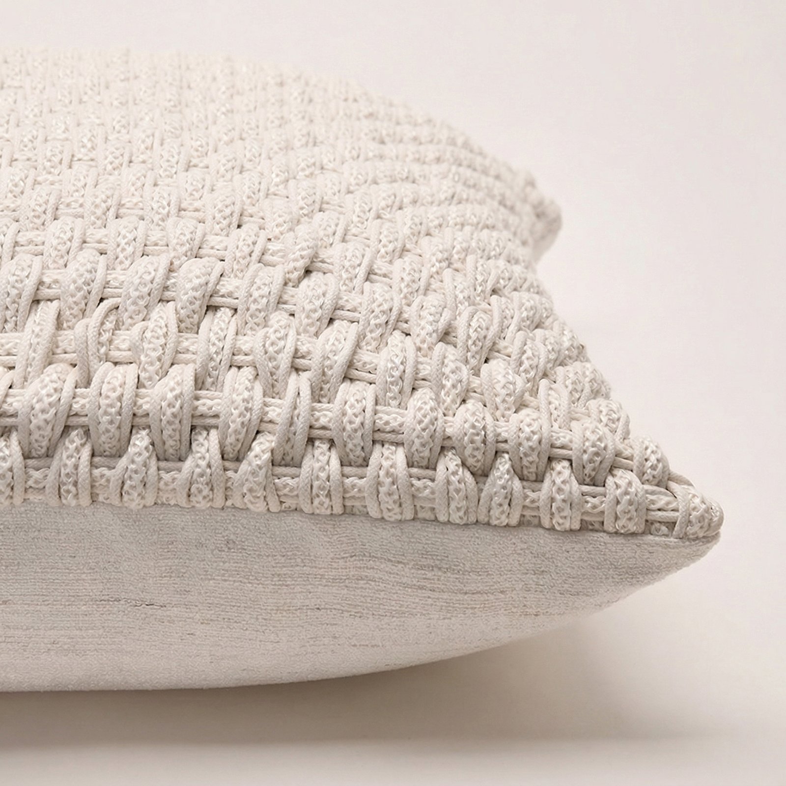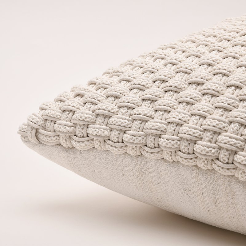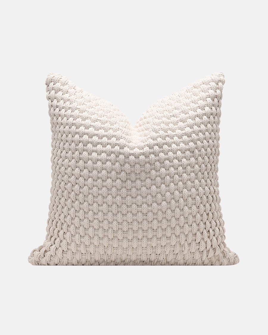 This elegant off-white cushion features a stunning, chunky woven texture that adds depth and warmth to any space. The intricate braided pattern on the front is perfectly balanced by a smooth, high-quality fabric on the reverse for a clean finish. With its soft neutral tone and tactile design, this cushion is the perfect versatile accent for a cozy yet sophisticated interior.