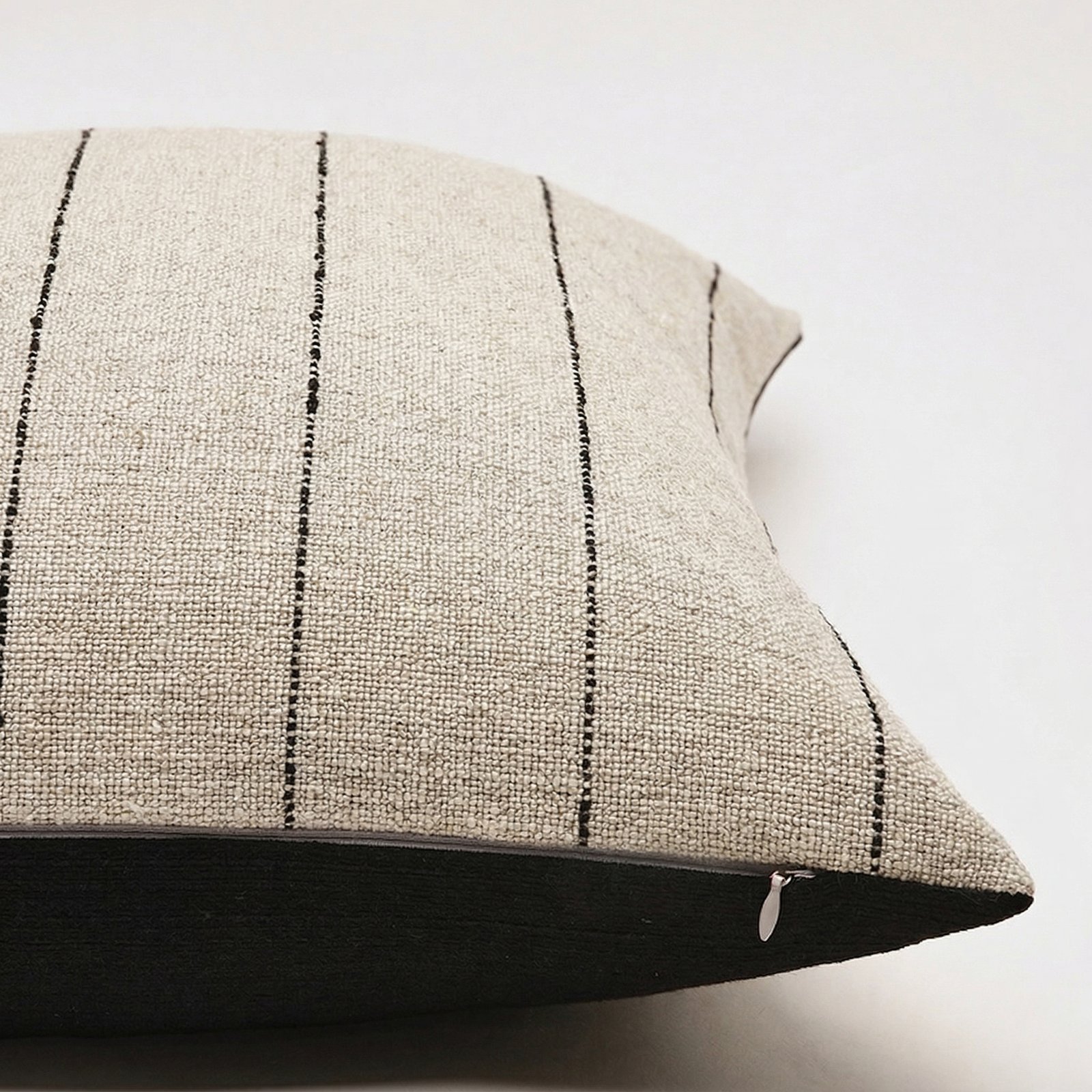 This sophisticated, black decorative cushion cover features a subtle yet rich geometric pattern in high relief. The front is adorned with a meticulously embroidered, three-dimensional honeycomb motif, creating a tactile and visually engaging experience. The smooth, solid black reverse is finished in a high-quality faux leather fabric, providing a sleek, contemporary contrast. The cover includes a hidden zipper for a seamless look and is the perfect accent for any modern or sophisticated interior.