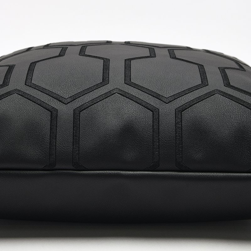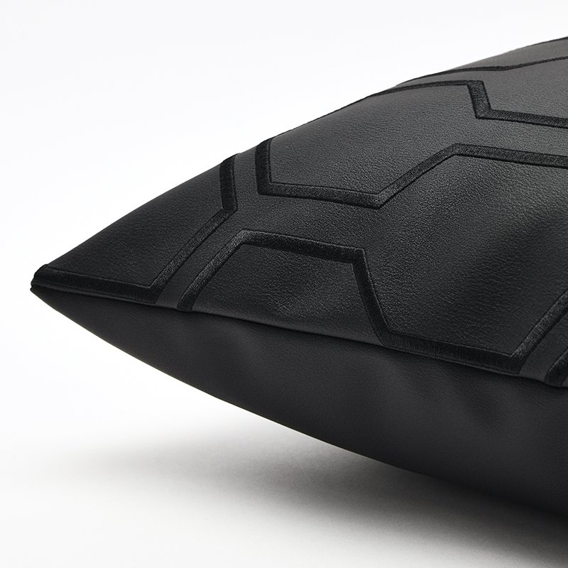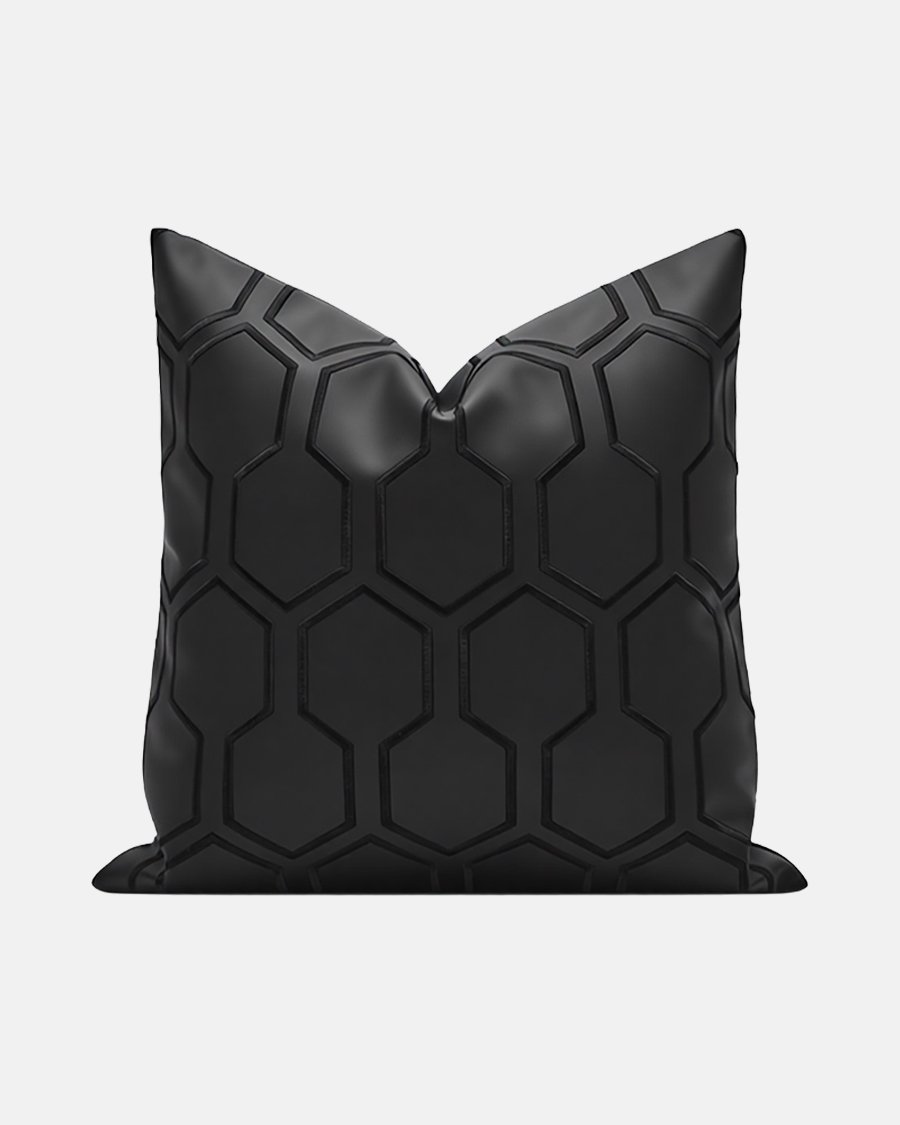 This sophisticated black pillow cover exudes modern elegance with its combination of high-quality faux leather and a refined honeycomb pattern. The geometric relief on the front gives the pillow a bold, architectural texture, while the smooth reverse provides a sleek finish. This piece is the perfect choice for adding a powerful, stylish accent to any industrial or contemporary interior.