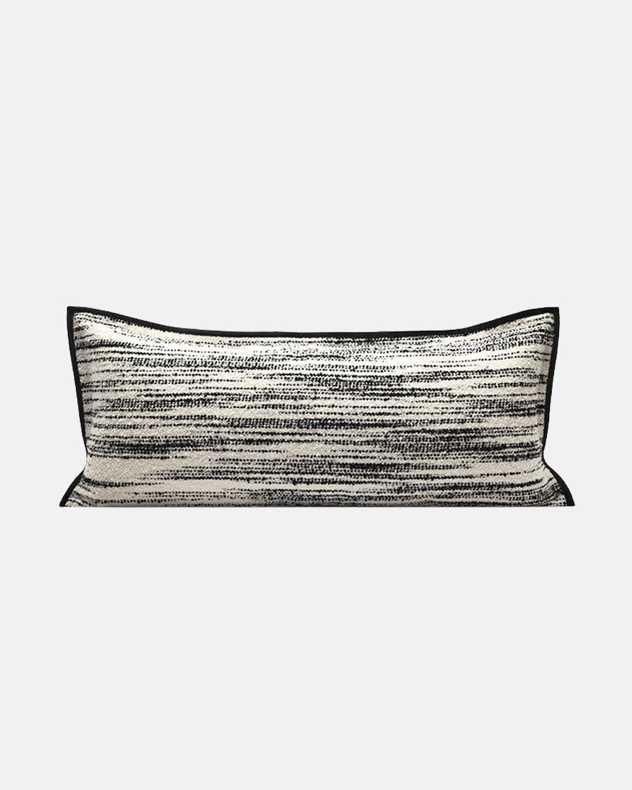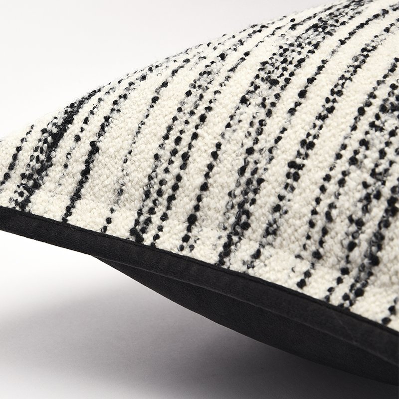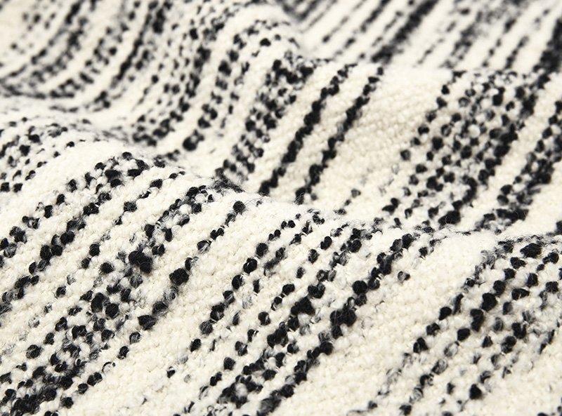 - Unique fabric with raised, dot-like black and white textural stripes.