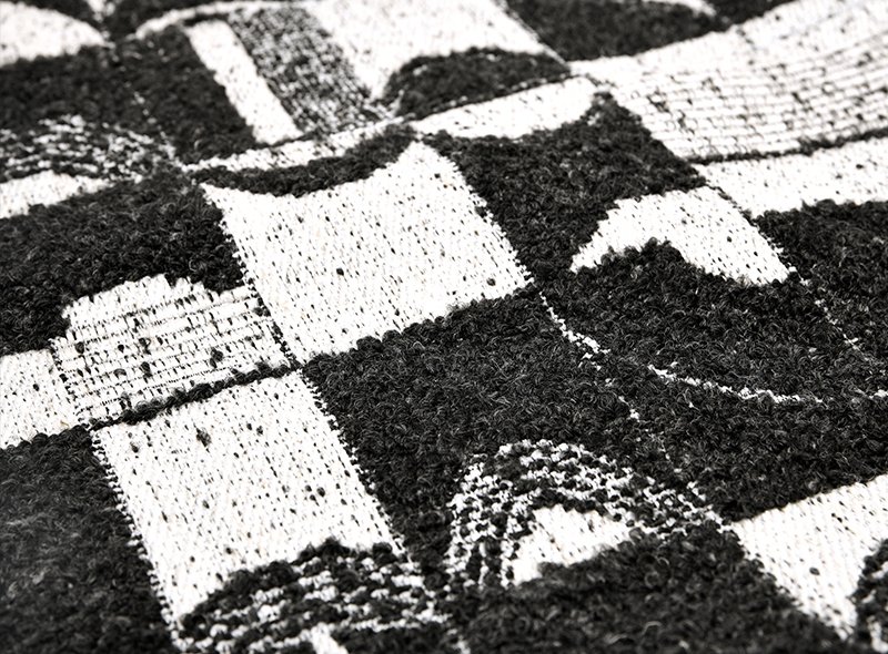 • Features a striking black and white abstract geometric pattern.