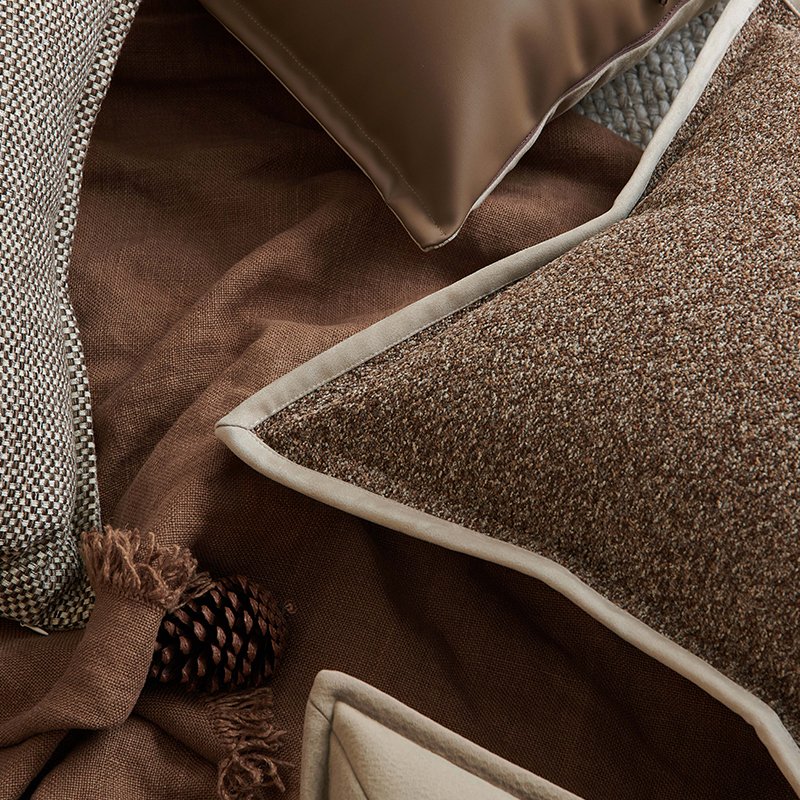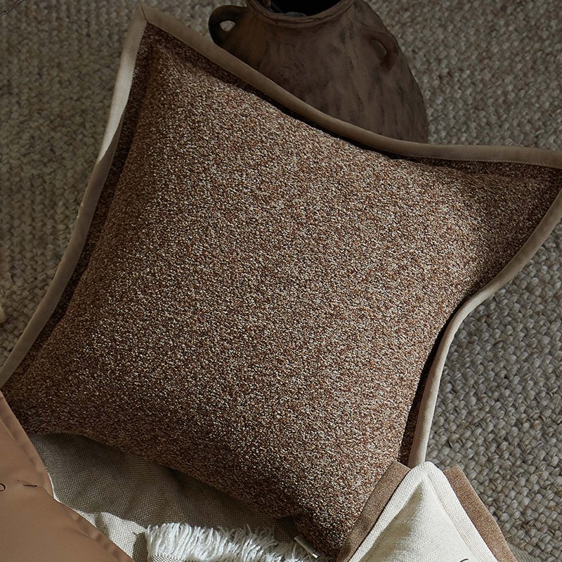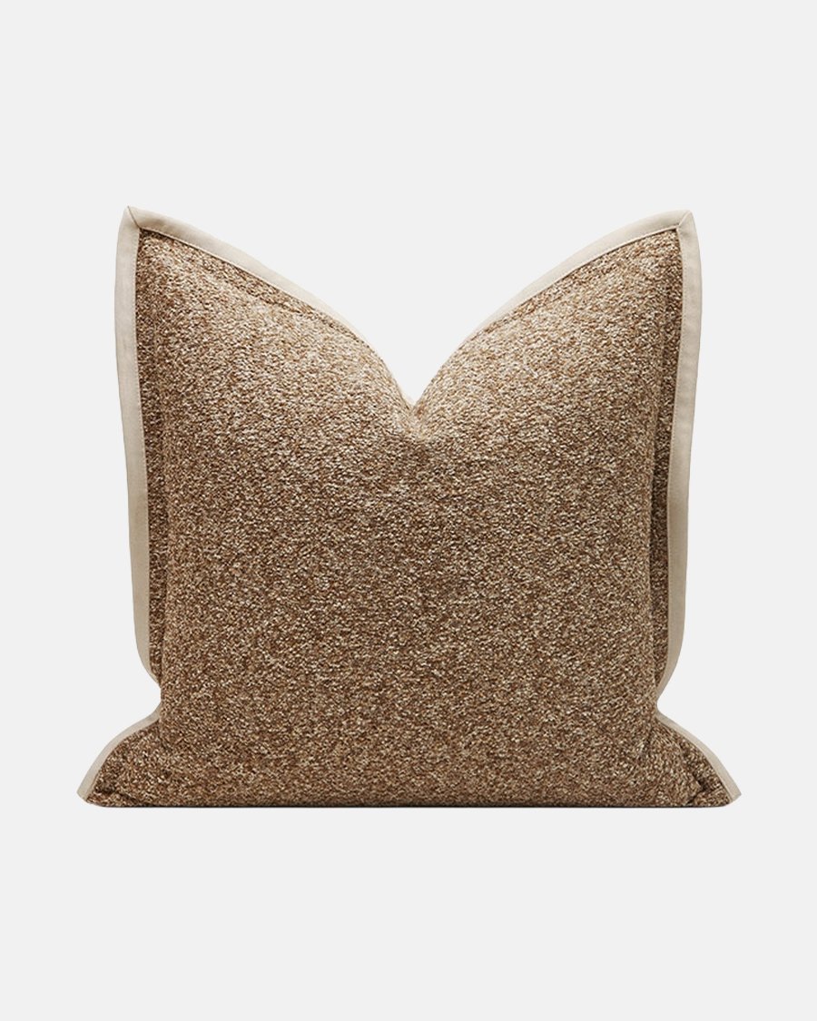 Elevate your interior with this luxurious bouclé decorative pillow, featuring a rich, textured weave in warm earthy tones. The sophisticated melange of brown and cream is beautifully framed by a contrasting beige flange, adding a refined, modern touch to any sofa or chair. Crafted for both comfort and style, this piece brings a cozy, tactile depth to your living space.