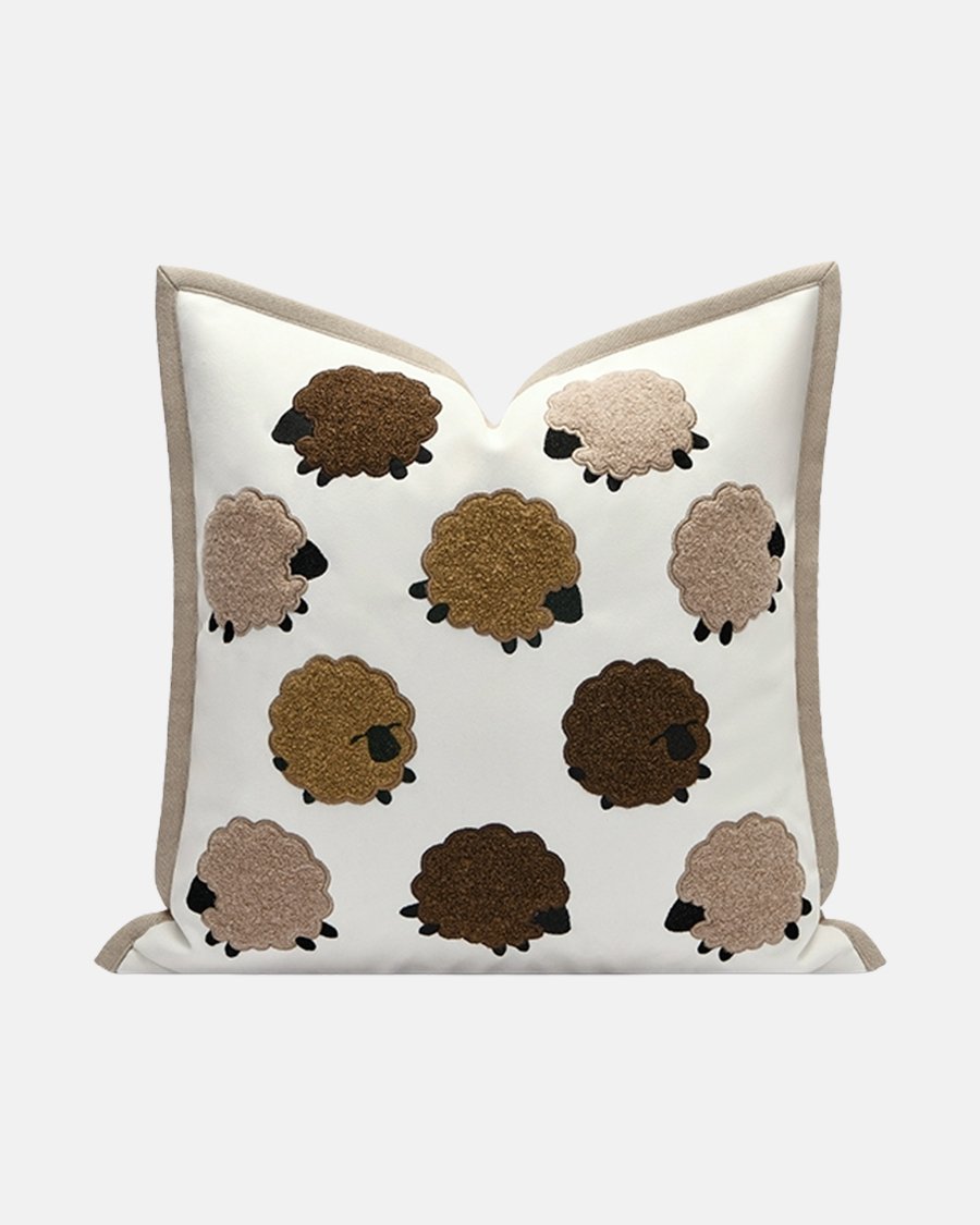 One sheep, two sheep… drift off to dreamland with The Sleepy Flock. This charming pillow features a gathering of fluffy, textured sheep in soothing earth tones against a crisp white background. It’s the perfect bedside companion to help little ones count their way to a good night’s sleep.