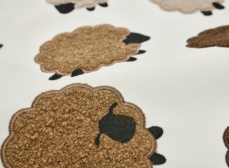 • Features a whimsical pattern of textured sheep in various earthy shades, perfect for a calming nursery or bedroom.