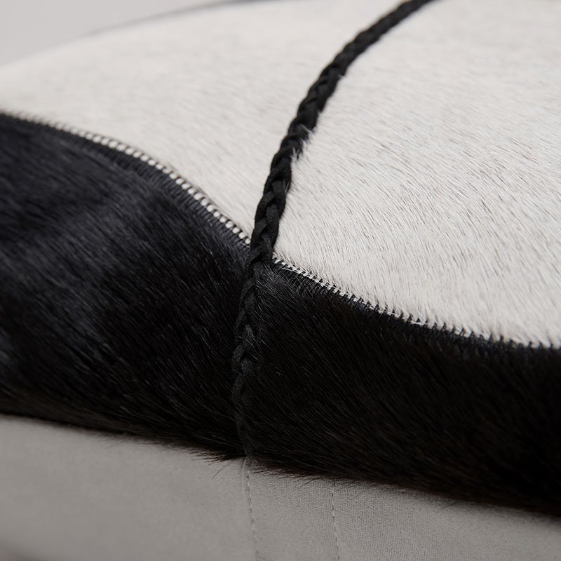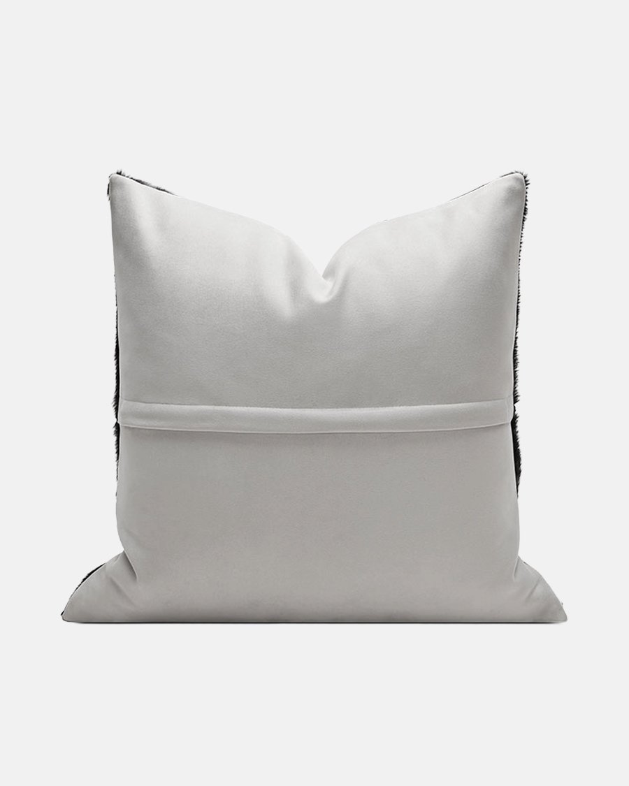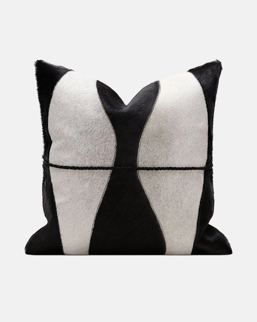 This sophisticated cream and black throw pillow cover introduces an artisanal, globally-inspired texture to any room. Crafted with precise embroidery on a rich, natural fabric base, it features a detailed black geometric and abstract motif that creates a captivating contrast against the clean cream canvas. The back is made of durable natural linen, and it includes a hidden zipper for a seamless look. Perfect for adding contemporary style to your sofa, bed, or armchair.